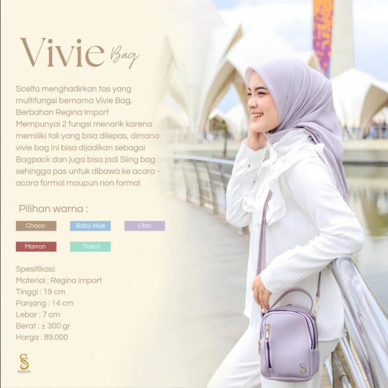 Produk selanjutnya yang tidak kalah cantik nya,Tas multifungsi yang cocok di pakai di berbagai Acara formal maupun non formal kini hadir kembali ? VIVIE BAG BY SCELTA? Scelta menghadirkan kembali tas yang multifungsi bernama Vivie Bag. Berbahan Regina Import Mempunyai 2 fungsi menarik karena memiliki tali yang bisa dilepas, dimana vivie bag ini bisa dijadikan sebagai Bagpack dan juga bisa jadi Sling bag sehingga pas untuk dibawa ke acara - acara formal maupun non formal ?? Pilihan warna : -Choco -Light blue -Lilac -Marron -Tosca Spesifikasi: Material : Regina import Tinggi : 19 cm Panjang : 14 cm Lebar : 7 cm Berat : ± 300 gr Harga : 89.000