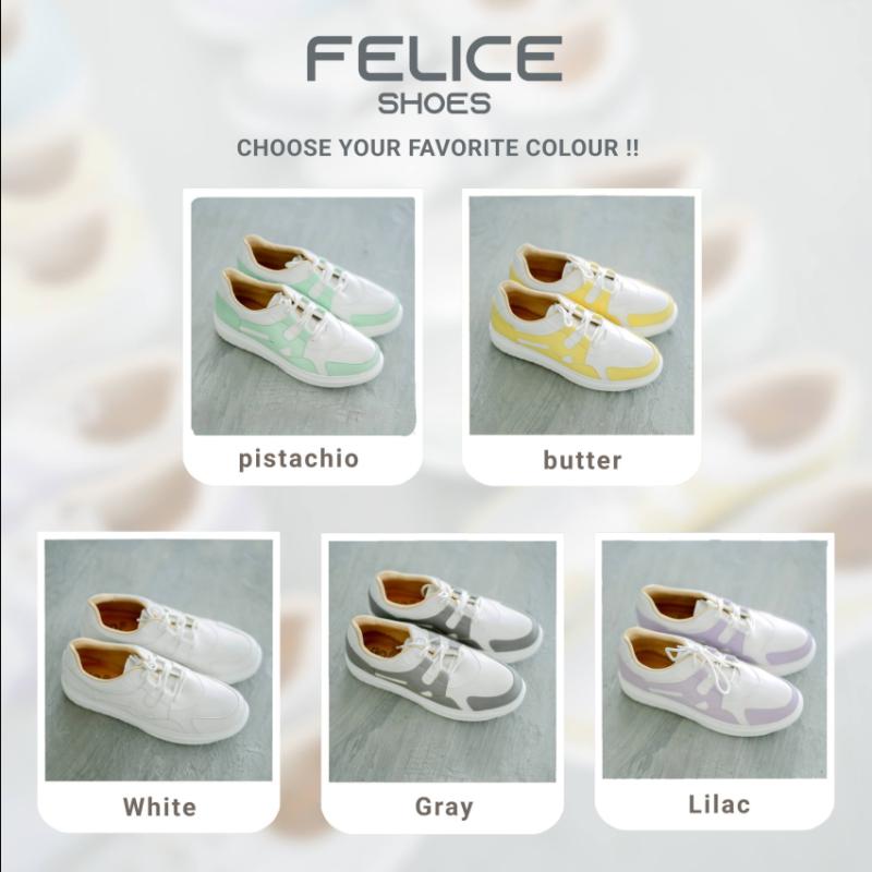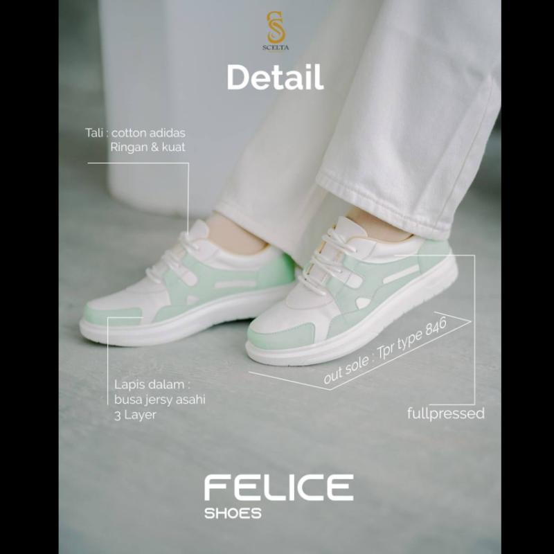 Bismillah... Scelta kini kembali menghadirkan Sepatu yang gak kalah casual siap menantang sang legendaris ? Felice Shoes Sepatu casual yang tampil all out dengan desain clean, sporty dan elegan membuat sepatu ini jadi terlihat trendy ? Berbahan upper Sebastian yang empuk dan nyaman gak bikin tumit sakit ??. Spesifikasi : - Bahan upper : sebastian - Lapis dalam : busa jersy asahi 3 layer - Tatak : lining with mbossed - out sol : Tpr type 846 - fullpressed - tali : cotton adidas ringan,kuat. - Konstruksi : duratek 1,25 + spon eva 2mili Size chart Felice shoes Size 36 22,5 cm Size 37 23 cm Size 38 23,5 cm Size 39 24 cm Size 40 24,5 cm Sepatu trendy ini dapat potongan harga lhoo Dari 199K menjadi 179K Saja ?? Wah menarik nih buat tambahan koleksi sepatu kamu